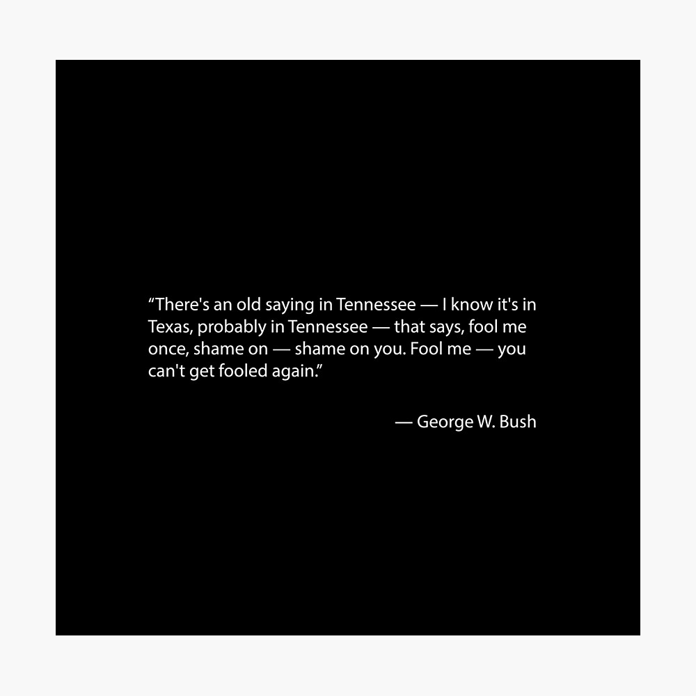 Source: www.redbubble.com- Fool Me Once - Quote By George W. Bush" Poster For Sale By Lapart | Redbubble