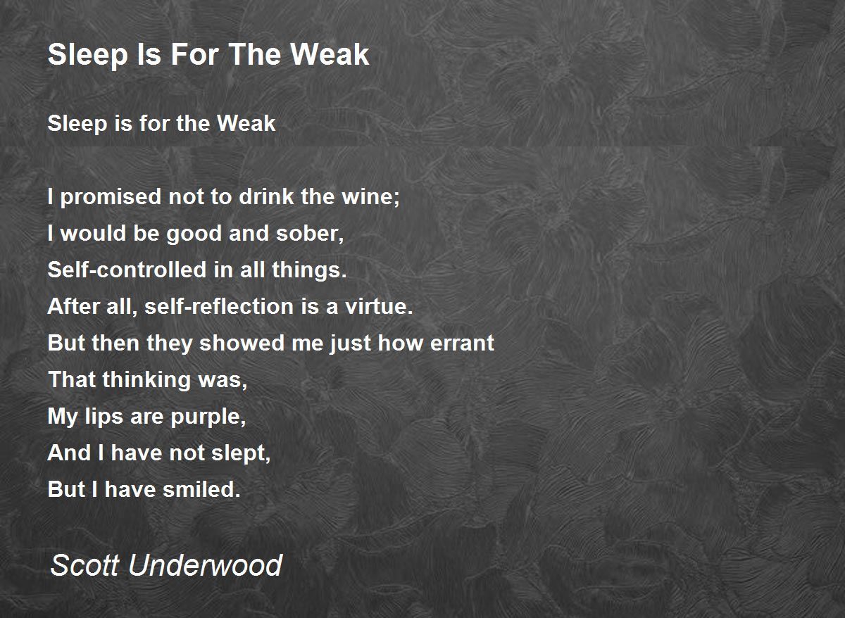 Source: www.poemhunter.com- Sleep Is For The Weak - Sleep Is For The Weak Poem By Scott Underwood