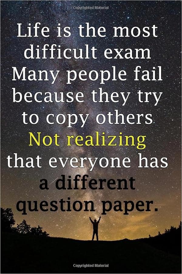 Source: www.amazon.co.uk- Life Is The Most Difficult Exam Many People Fail Because They Try To Copy Others Not Realizing That Everyone Has A Different Question Paper: ... Write In For Women,Mend&Girls,Quotes Journal: Amazon.co.uk: Quotes,