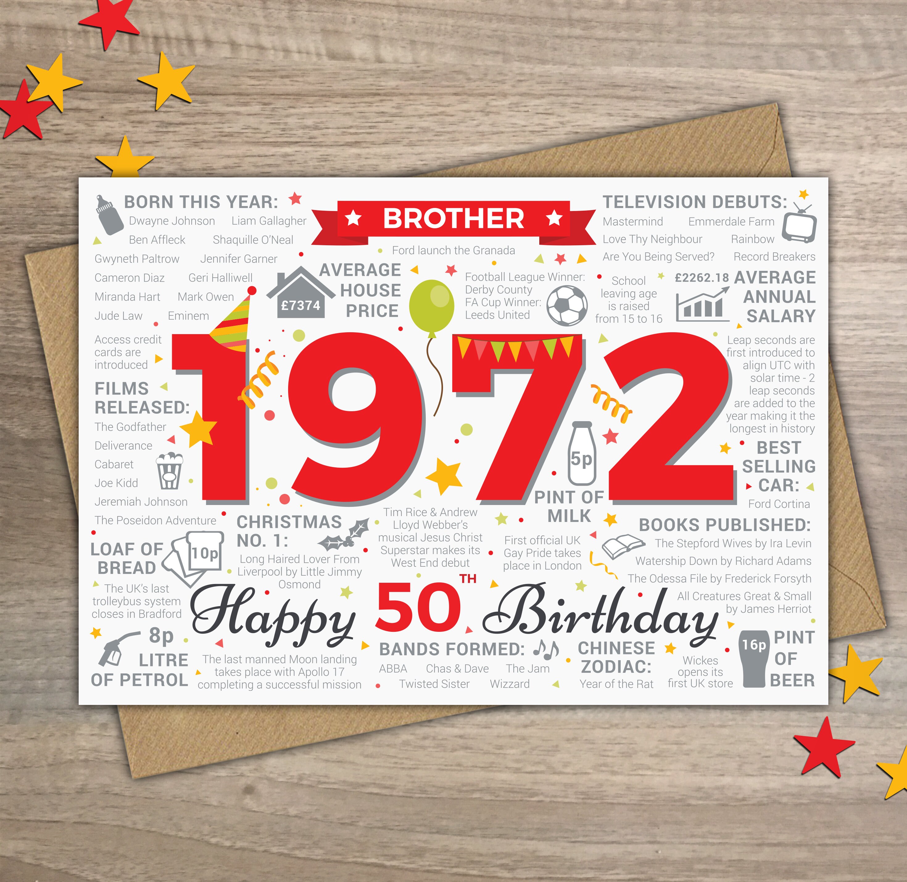 Source: www.etsy.com- Happy 50Th Birthday Brother Greetings Card Born In 1972 Year - Etsy