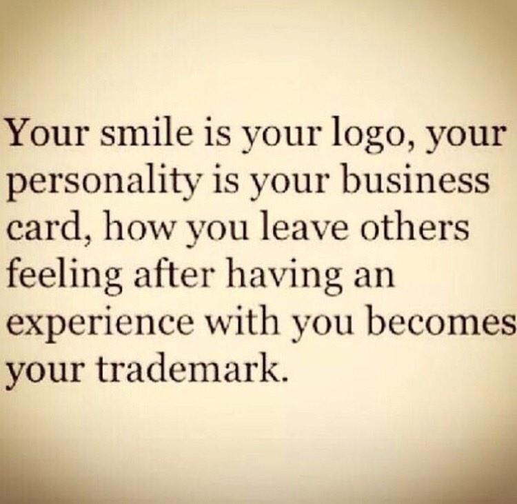 - Your smile is your logo, your personality is your business card. My favorite quote is… your smile is your logo, how you leave people feeling is your brand.