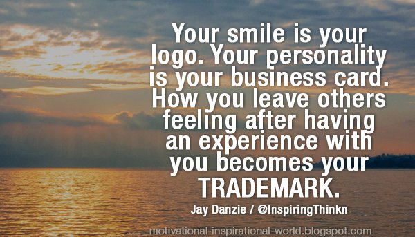 - You never know who is falling in love with your smile.”. “your smile is your logo, your personality is your business card, how you leave others feeling after having an experience with you becomes your trademark.” ~ jay danzie.